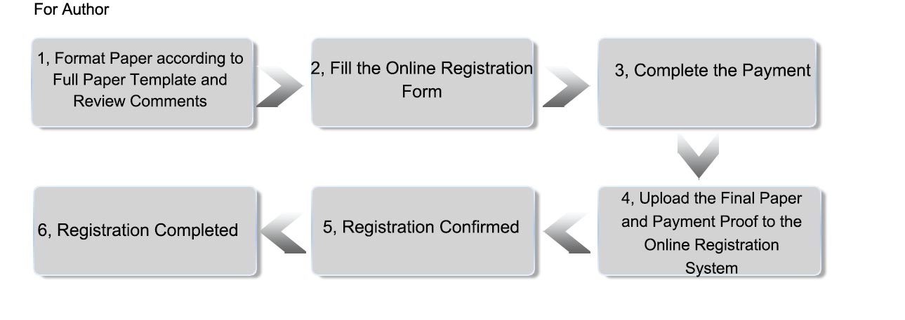 • Selected papers with great extension will be recommended to publish in international journals, and the publishing fee of journal is subject to the charge of the journal. 5. Registration Fee Included Author(s):